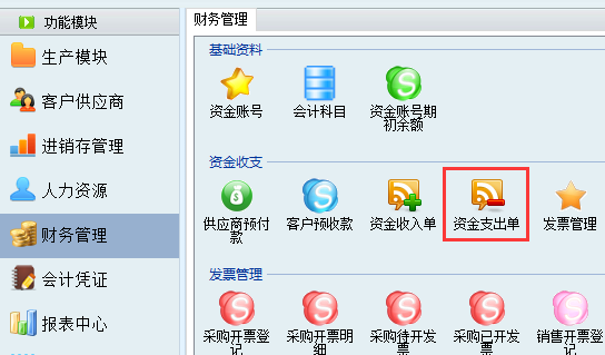 1、打開財務管理-資金支出單