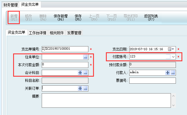【資金支出單】是除了采購訂單的付款之外,其他的支出,與采購付款沒有關系;
