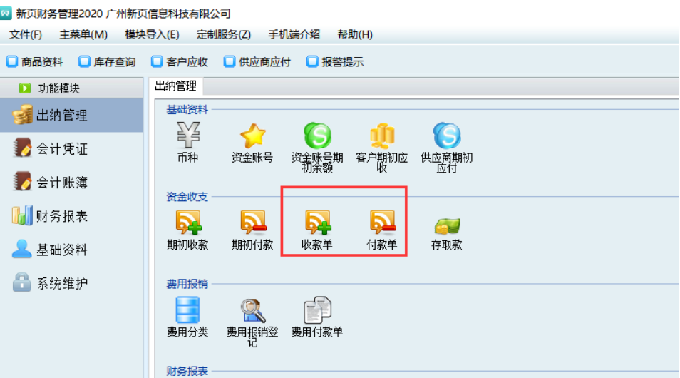 4、除了核銷期初應收應付在出納管理的期初應收和期初應付里面做之外,其他直接收付款比如收到客戶貨款,支付貨款或支付水電費、房租等分別在收款單和付款單里面做: