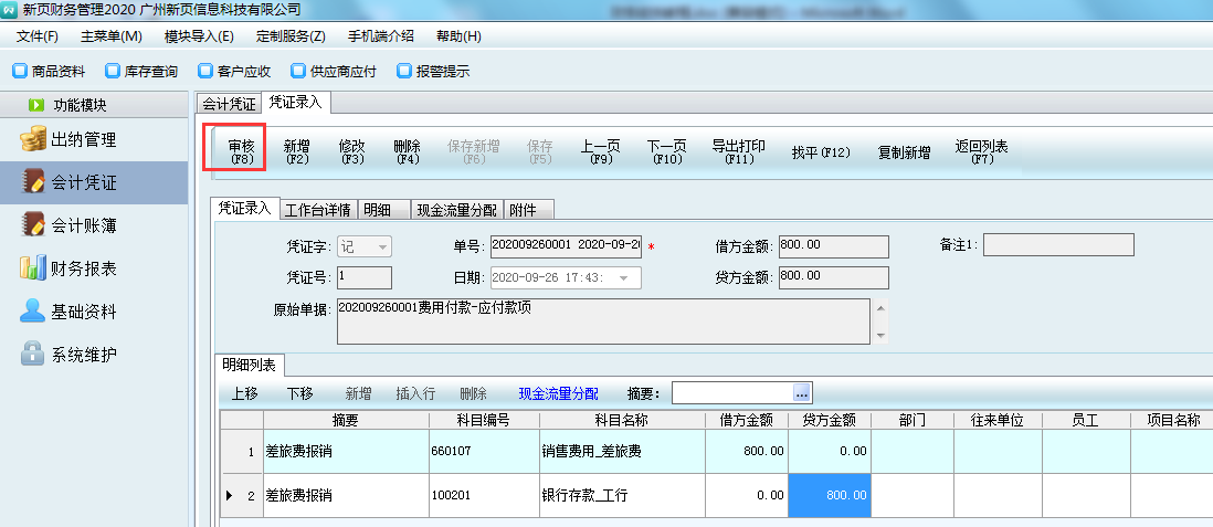 ②在會計憑證-憑證錄入,可查看已生成的憑證: