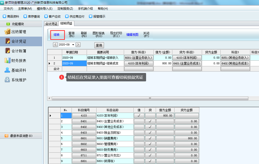 5、登賬后在會計憑證-期末結轉損益里面做結轉損益,即把損益類科目余額結轉到本年利潤: