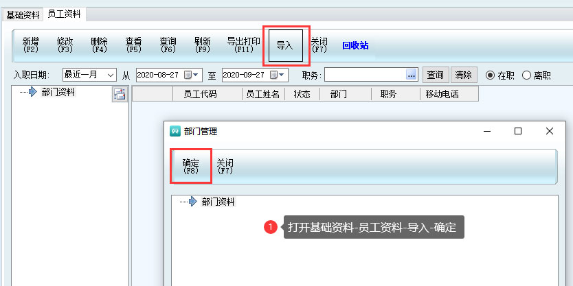 1、導入員工資料步驟:做好Excel表-打開基礎資料-員工資料-導入