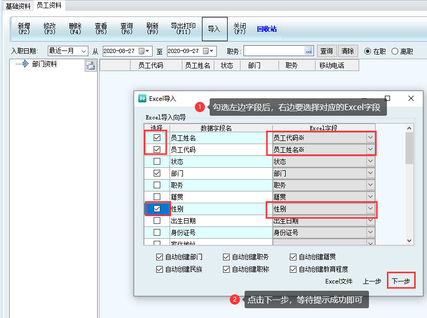 Excel導入示范:(商品資料、客戶、供應商以及固定資產導入操作辦法跟導入員工資料一樣)