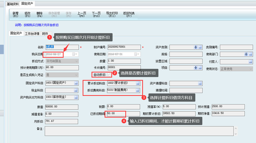 月折舊=(原值-殘值-減值準備)/預計使用期限