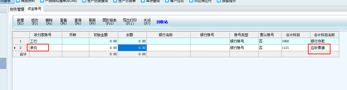 1、財務管理的資金賬號里面創建一個資金賬號“承兌”,并且選擇關聯的會計科目“應收票據”