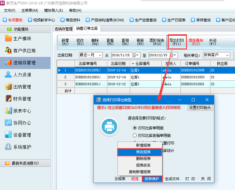 1、點(diǎn)擊導(dǎo)出打印-報(bào)表維護(hù)-修改報(bào)表
