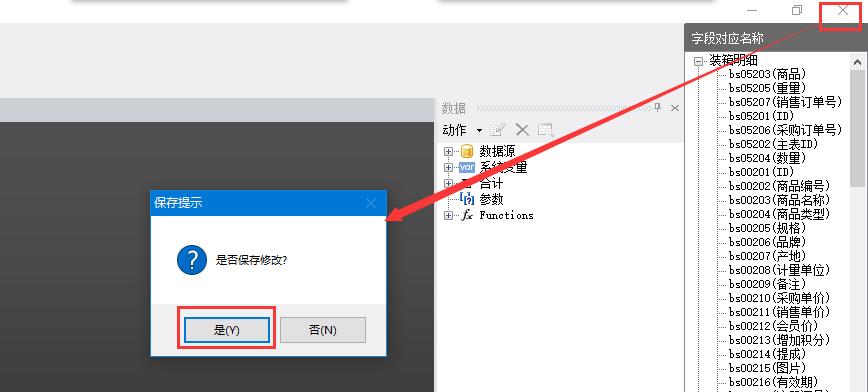 8、此時(shí)報(bào)表就修改好了,點(diǎn)擊關(guān)閉修改窗口,提示是否保存修改,點(diǎn)擊是