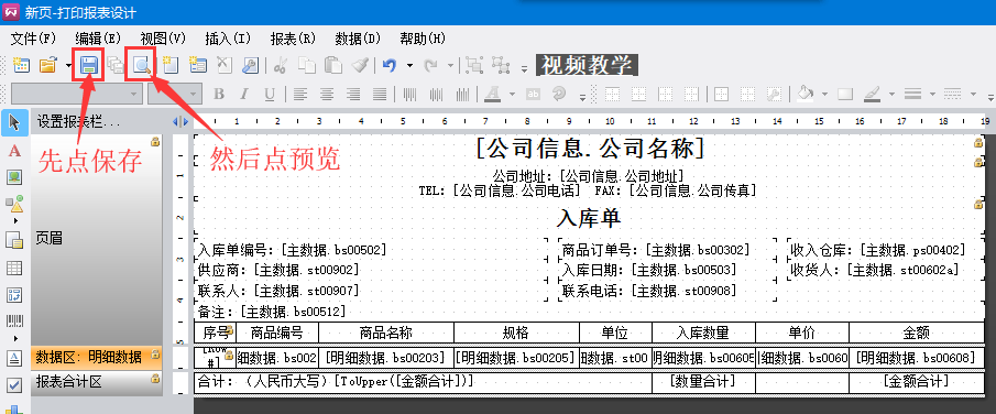 11、在工具欄點(diǎn)擊保存,再點(diǎn)擊預(yù)覽,可見報(bào)表如下圖所示。