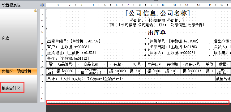 2、在報表合計區,往下拉動,把這個區域擴大