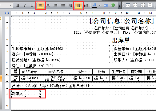 5、選中制單人,點擊工具欄的左對齊和垂直居中符號