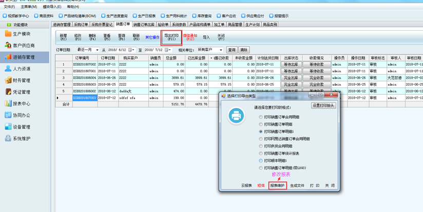 1.導(dǎo)出打印-報表維護-修改報表