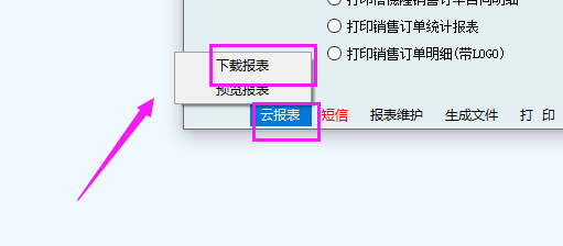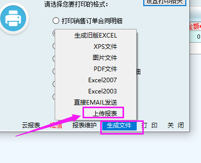 3、下載之后,回到導出打印界面,選擇剛剛的報表,點擊生成文件,然后點擊上傳(進銷存是點擊報表維護——上傳報表)。不點擊上傳的話可能別的電腦不會更新到這個報表。