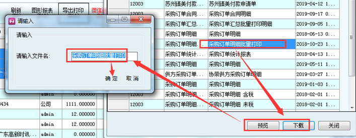 2.報表名字可更改(比如:****明細批量打印),下載后即可打印