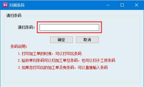 4)然后彈出掃描條碼的窗口,用掃描槍掃描加工單條碼,即可快速領料。