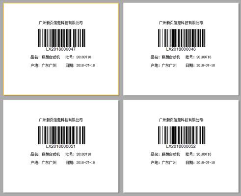2)打印出來的條碼如下圖,可把條碼貼在對應的產品上