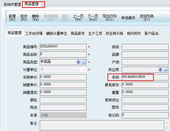 1)先在進銷存管理-商品管理中,錄入商品的條碼
