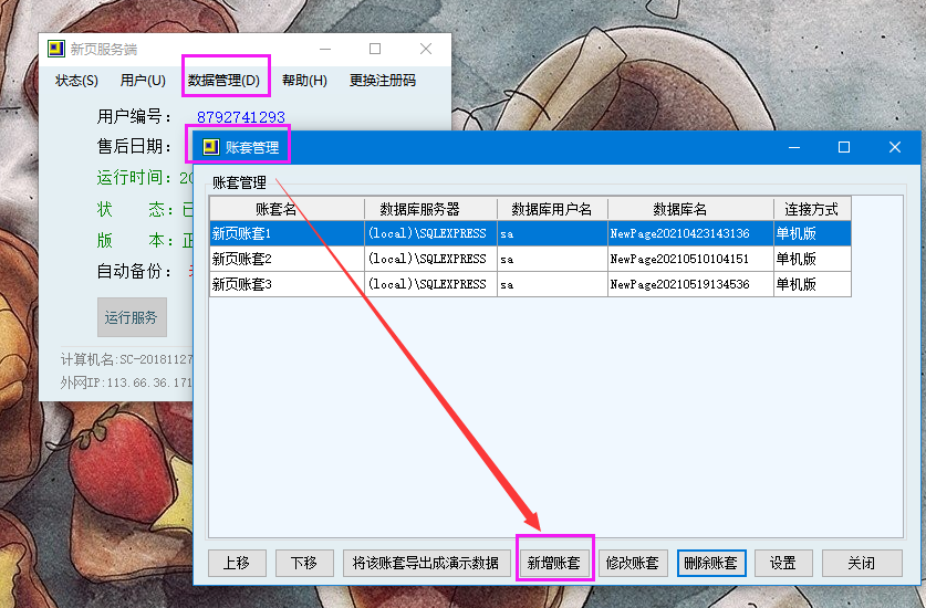 備份完成后,在新增的空白賬套中恢復這個賬套的備份。