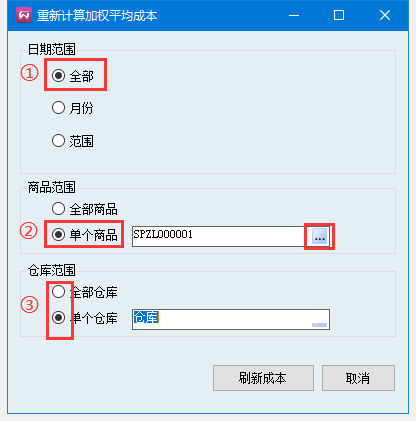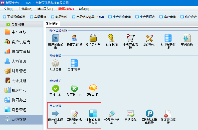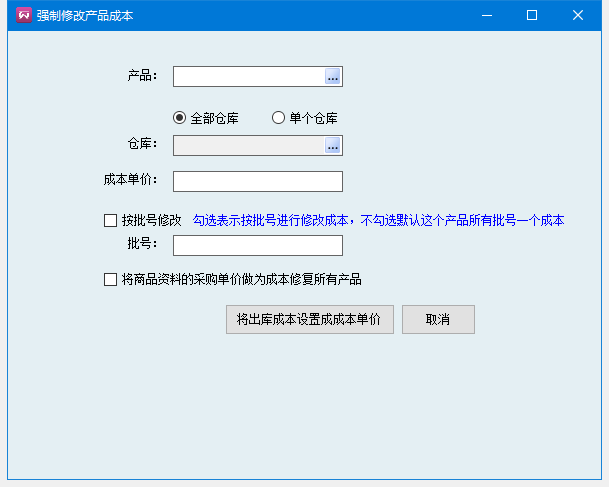 3、強(qiáng)制修改產(chǎn)品成本——該功能是直接修改當(dāng)前庫(kù)存成本單價(jià)和歷史出庫(kù)成本單價(jià)