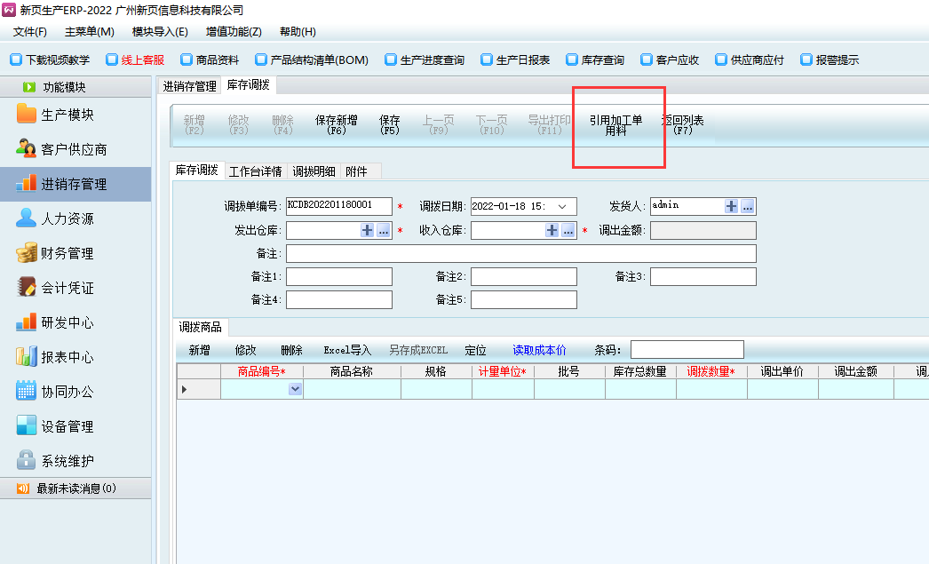 調撥單可以引用加工單
