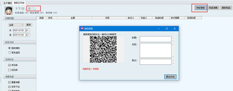 1、 使用微信給企業(yè)內(nèi)部員工發(fā)送消息前,應(yīng)先在員工資料里面建立一個員工的資料,然后在操作員管理的功能下給員工建立一個賬號,該員工再在工作臺的微信綁定的按鈕綁定員工的微信。