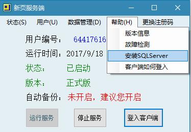 安裝完成后打開服務端----幫助----故障檢測,修改數據庫密碼。