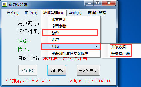 1.先備份一下數據;在新頁服務端-數據管理-備份;