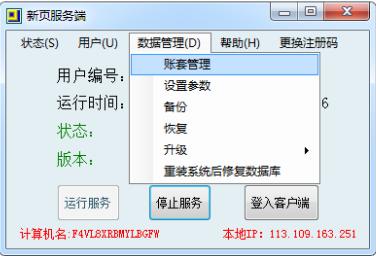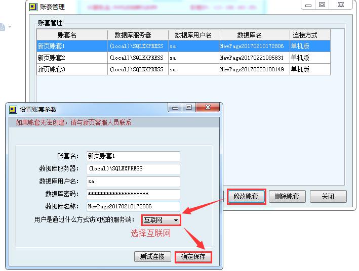 1. 新頁服務(wù)端-----數(shù)據(jù)管理-----賬套管理-----修改賬套,把服務(wù)端的訪問方式,改成互聯(lián)網(wǎng)訪問;