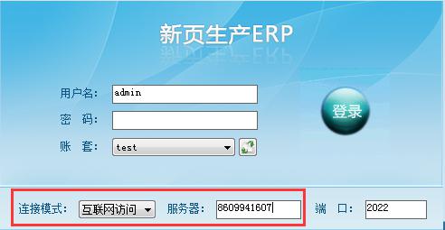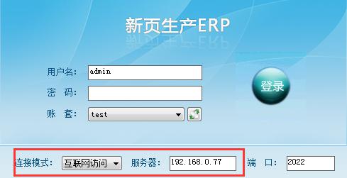主機(jī)的登錄框連接模式為互聯(lián)網(wǎng),服務(wù)器為主機(jī)ip地址。