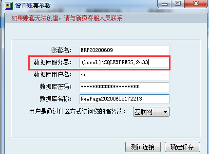 改成互聯(lián)網(wǎng)訪問的時(shí)候要輸入數(shù)據(jù)庫sa的密碼,點(diǎn)擊測(cè)試連接,如果提示連接成功,確定保存。提示連接失敗請(qǐng)聯(lián)系客服。