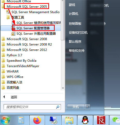 2.在開始菜單中,找到SQL Server 2005的安裝文件夾——SQL Server配置管理器