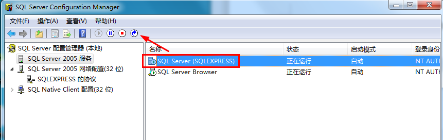 然后重新啟動(dòng)服務(wù)(SQLEXPRESS)