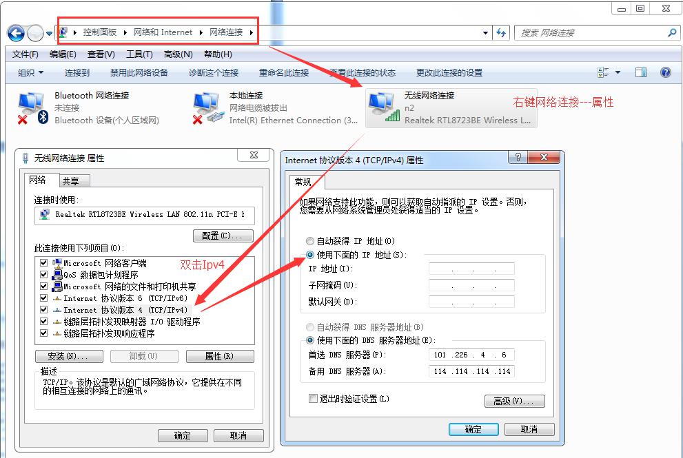 把以上Ipv4地址、子網(wǎng)掩碼、默認(rèn)網(wǎng)關(guān)、首選DNS服務(wù)器信息填到下面IPV4屬性框內(nèi),確定。部分電腦固定IP以后會出現(xiàn)無法上網(wǎng)。此時改回自動獲取IP,再聯(lián)系客服處理。