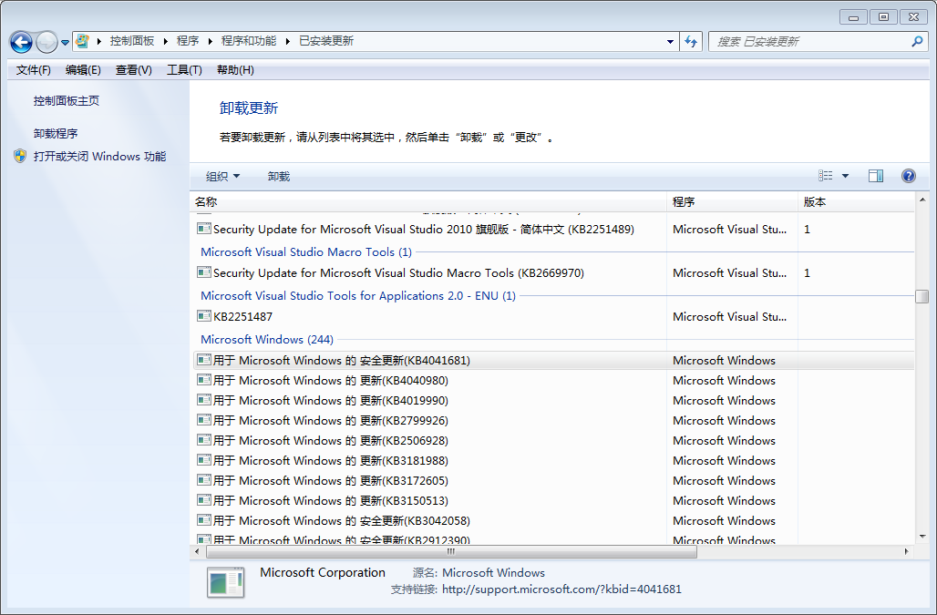 在控制面板>程序>程序和功能>已安裝更新中,找到對應(yīng)的兩個補(bǔ)丁,進(jìn)行卸載。不同系統(tǒng)對應(yīng)不同的補(bǔ)丁。