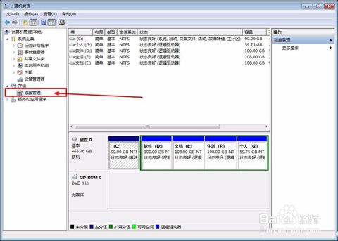 2、--->“磁盤管理”,這時窗口中所示的“磁盤0”即我們電腦自帶的那塊硬盤,我們接下來的操作都是針對“磁盤0”進行的