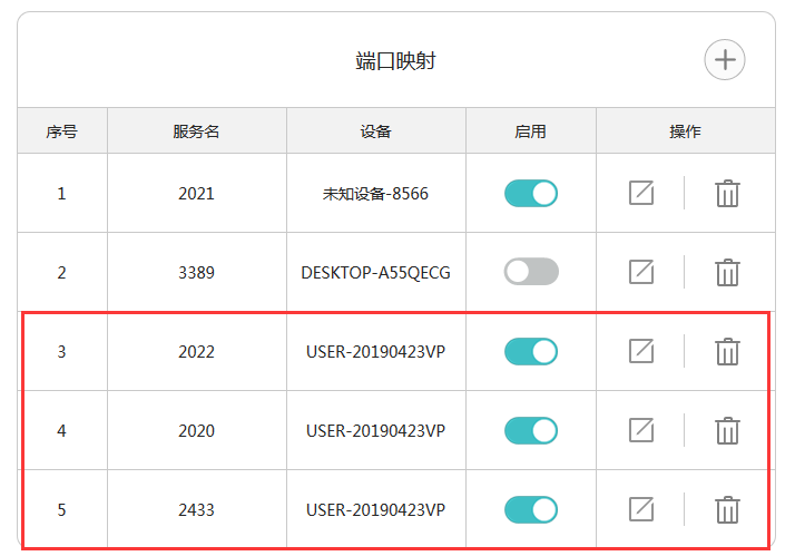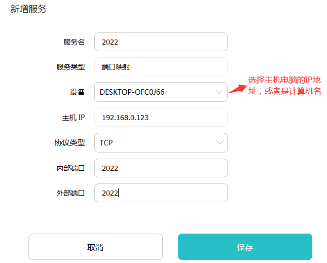 需要為2022 , 2020 , 2433三個端口都分別設置以下的服務。指定設備是指主機電腦的地址