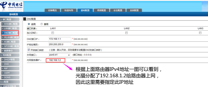 然后再設置光貓指定榮耀路由器的地址就可以了。