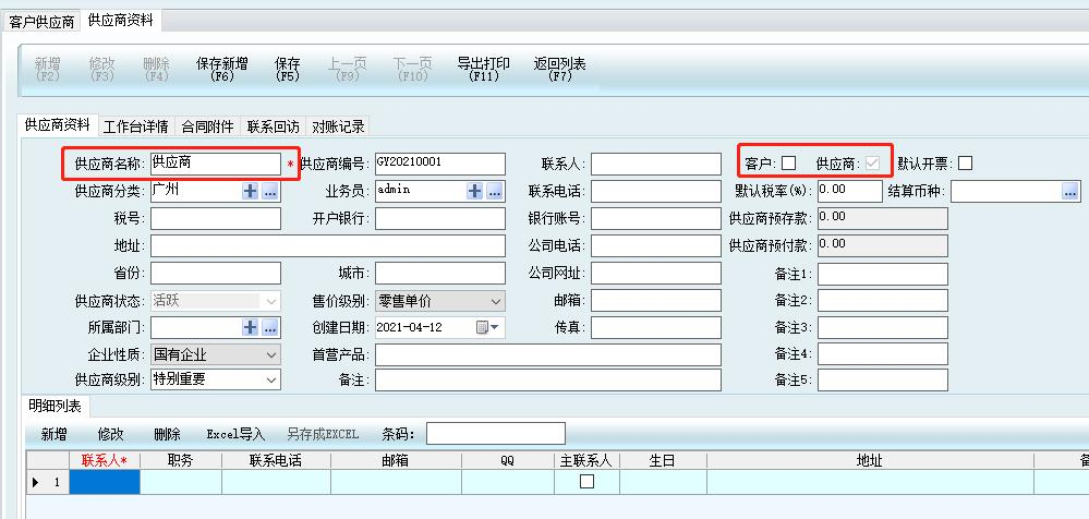 Ps:也可以不分類直接添加供應(yīng)商或客戶資料。
