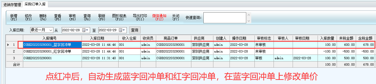 2、藍字回沖單上修改單價: