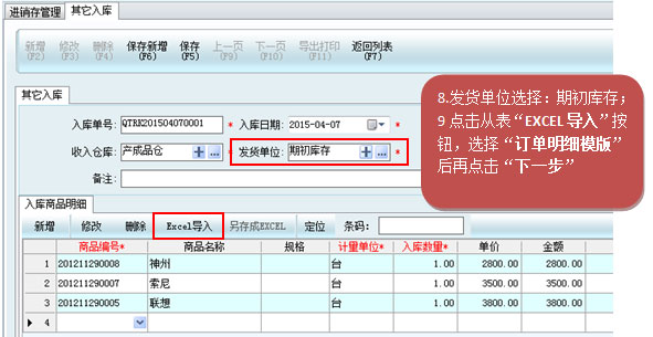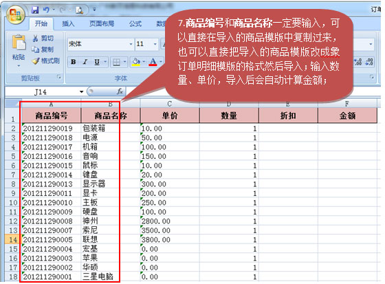 導入格式:在進銷存管理-商品管理-導入-打開模版-訂單明細模版