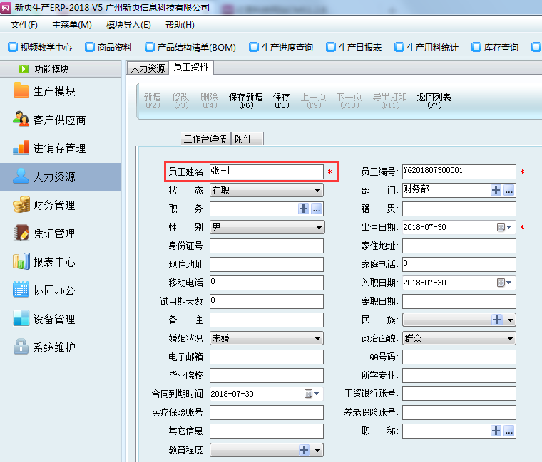 手動(dòng)錄入員工資料,*號(hào)的內(nèi)容為必填項(xiàng)目。