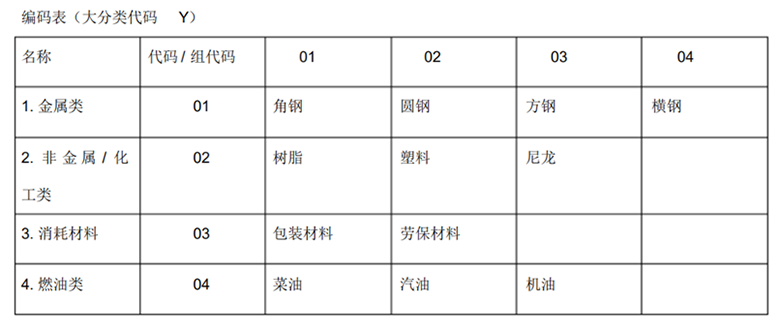 原材料類編碼