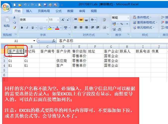 導入的格式在軟件的安裝路徑下,默認在:D:\d:\新頁進銷存\Client\Excel下,