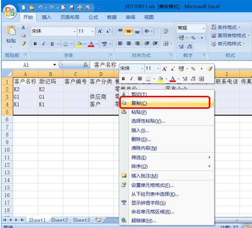 2.6 EXCEL的格式要簡單的列頭+內容即可,如果不確定格式是否是對的,可以全選內容,右擊選擇“復制”