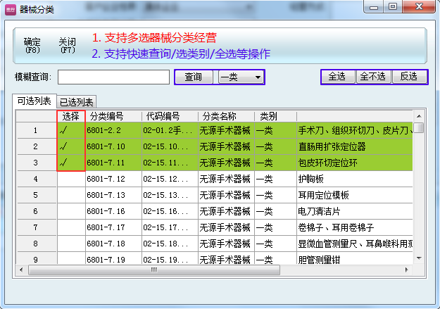 參與經營范圍管理的產品,在基礎資料里選擇相應的器械分類。