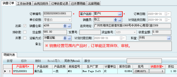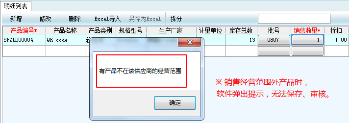 ※ 產品只允許在客戶的經營范圍內銷售出庫