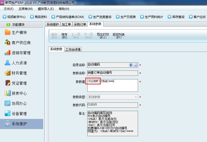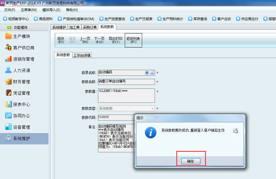 2、參數(shù)值改為*** (表示客戶編號、表示年、***表示自動編號),然后點擊保存,退出系統(tǒng),重新登錄才生效。