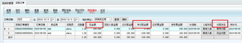 軟件默認(rèn)是按入庫(kù)結(jié)算,即未付款金額=已入庫(kù)金額-已付款金額;