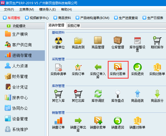 軟件中,做付款有兩個(gè)地方,【進(jìn)銷存管理】中的【采購(gòu)付款單】,和【財(cái)務(wù)管理】中的【資金支出單】;