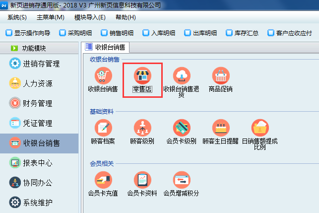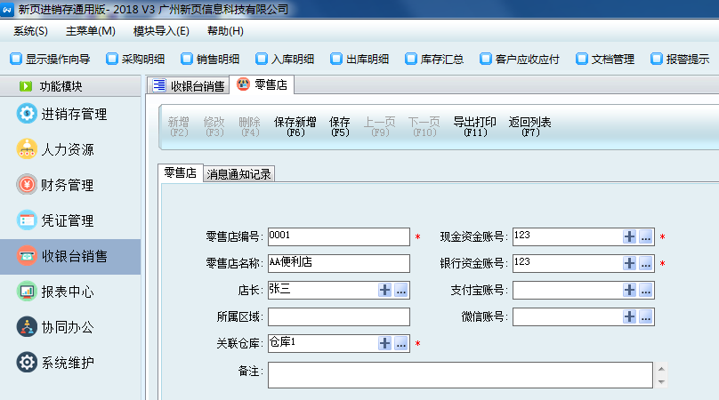 3、打開收銀臺銷售-零售店,先建立一個(gè)零售店,如下圖;