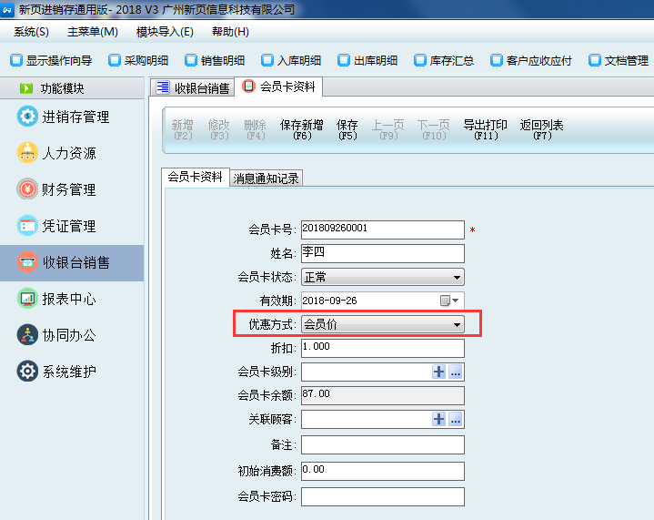 4、然后錄入會員資料(如果店鋪沒有設(shè)立會員的,可以忽略此步)
